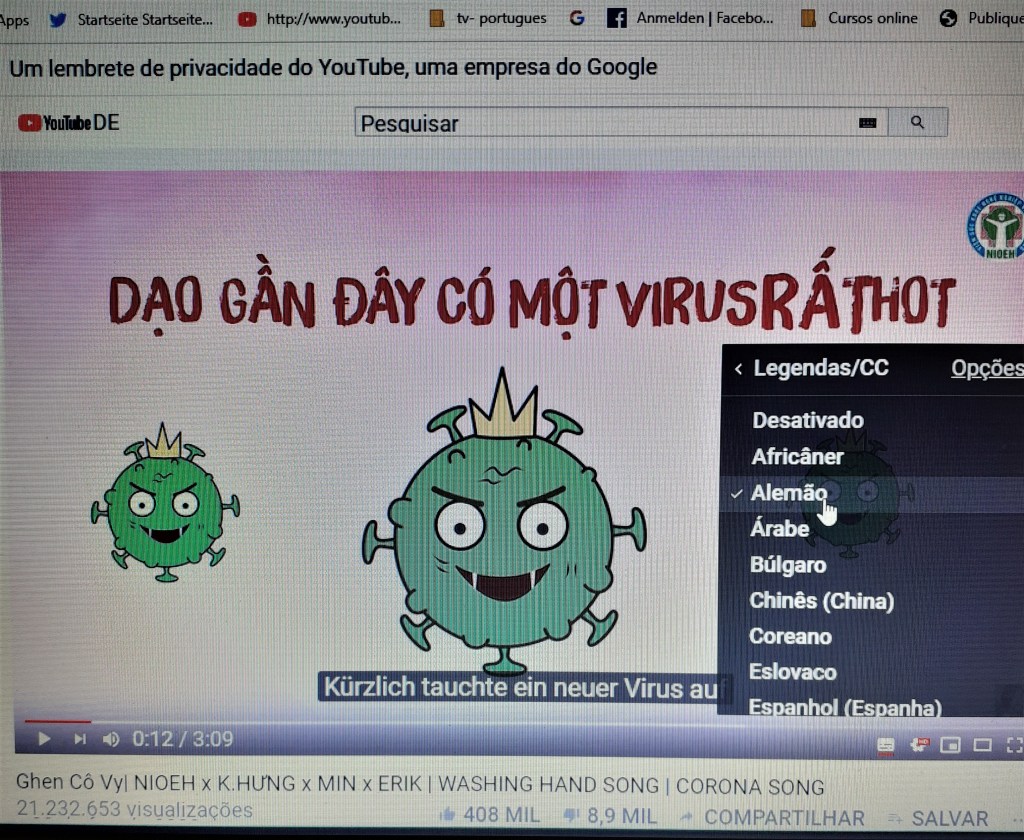 Passo 5: PARA VER LEGENDA EM ALEMÃO?Clique em „alemão“ então! Ou em qualquer uma das 9 línguas oferecidas!