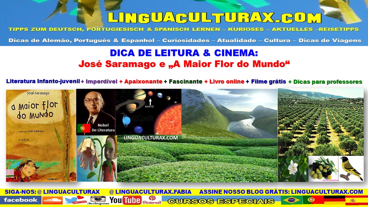 Já conhece o livro „A maior flor do mundo“ do Prêmio Nobel de Literatura, o escritor português José Saramago? Aproveite esse momento especial para uma leitura cheia de magia! Chame seus filhos, sobrinhos, amiguinhos ou alunos! Veja nossas dicas para ler o livro e/ou ler o livro online gratuitamente! Não deixe de ver nossas Dicas para a Sala de Aula, assim como nossas Dicas de leitura! Bem, prepare as pipocas, boa leitura e bom filme!