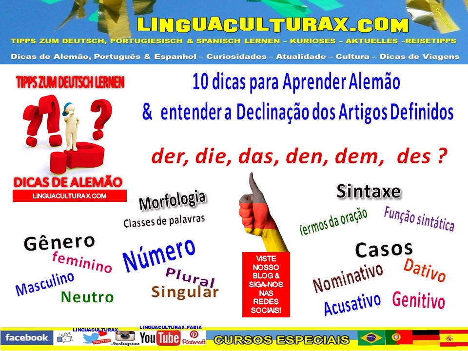 Hoje você vai receber mais algumas dicas para entender melhor a utilização destes artigos em alemão. Fique atenta(o) ao tema „Declinação“, às técnicas de aprendizagem sugeridas e aprenda com mais eficiência. Economize seu tempo e seus nervos 😉