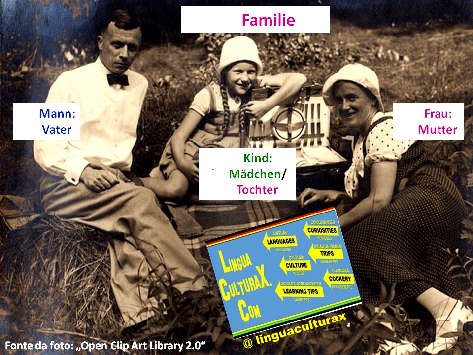 - Familie, Frau, Mutter e Tochter são palavras femininas, ou seja, substantivos femininos, e são acompanhados do artigo feminino „die“ (a);