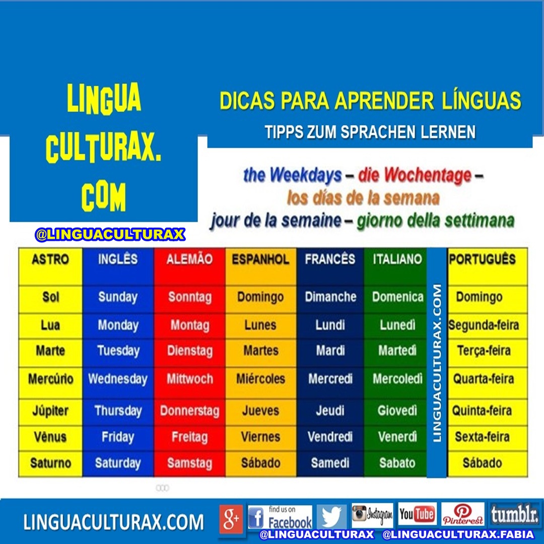 OS DIAS DA SEMANA EM PORTUGUÊS & EM OUTRAS AS LÍNGUAS (die Wochentage in Portugiesisch & in anderen Sprachen – Days of the week in portuguese & in others languages)